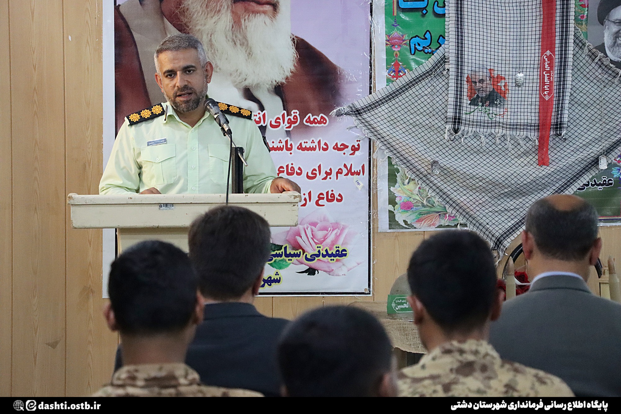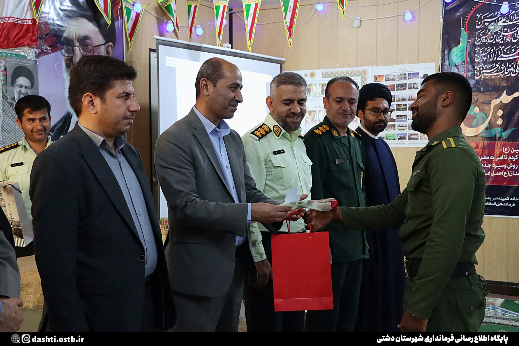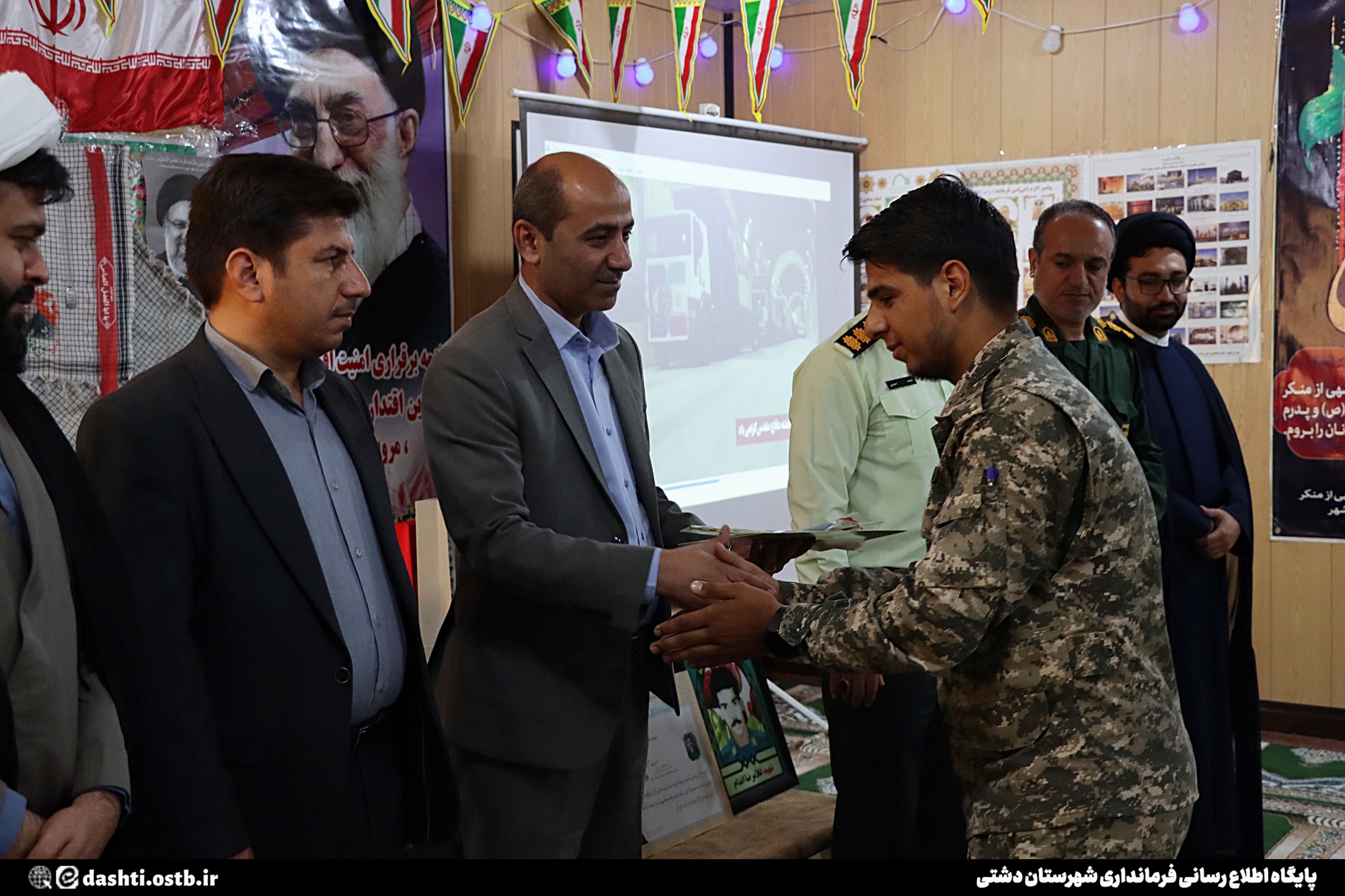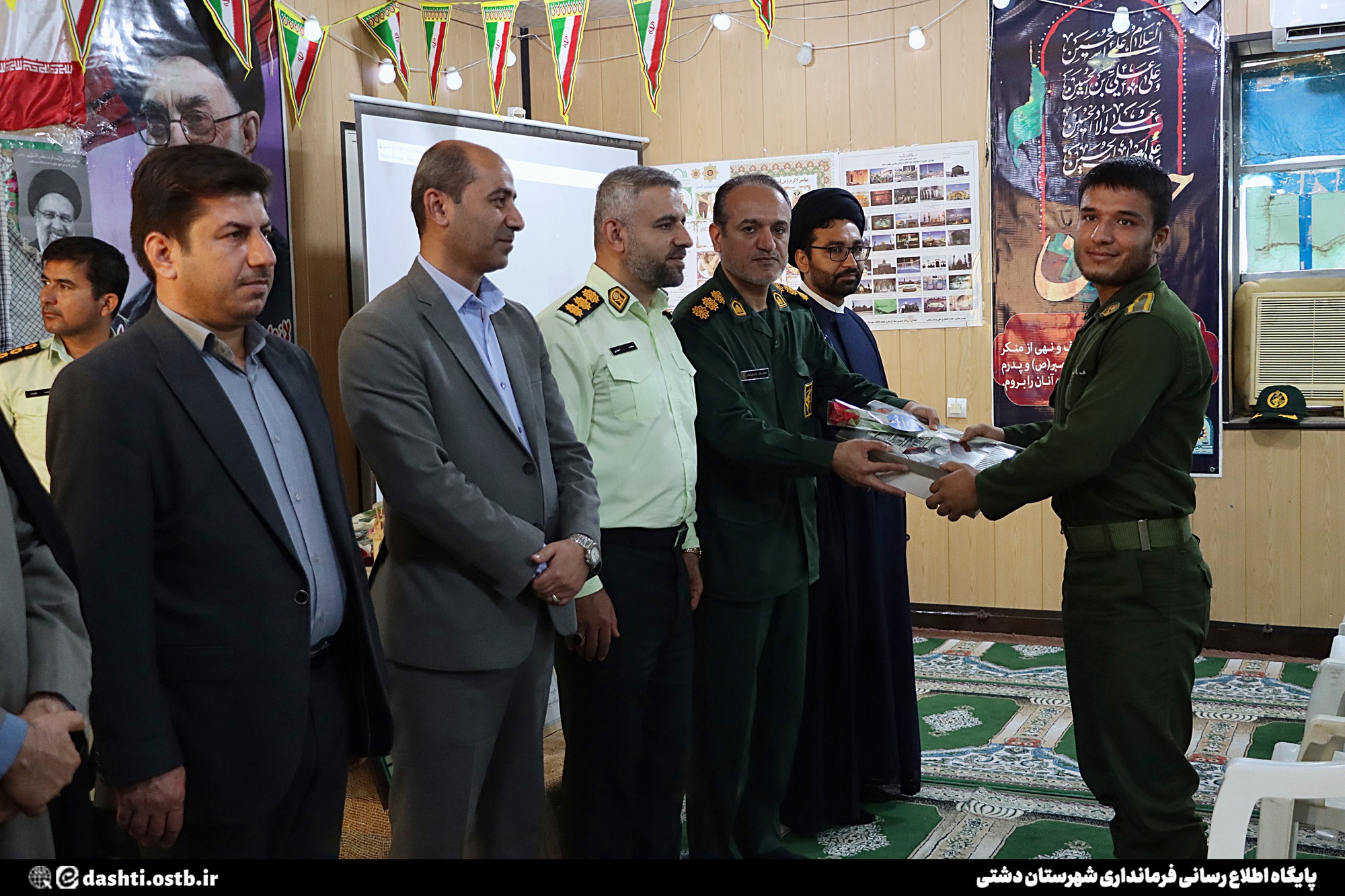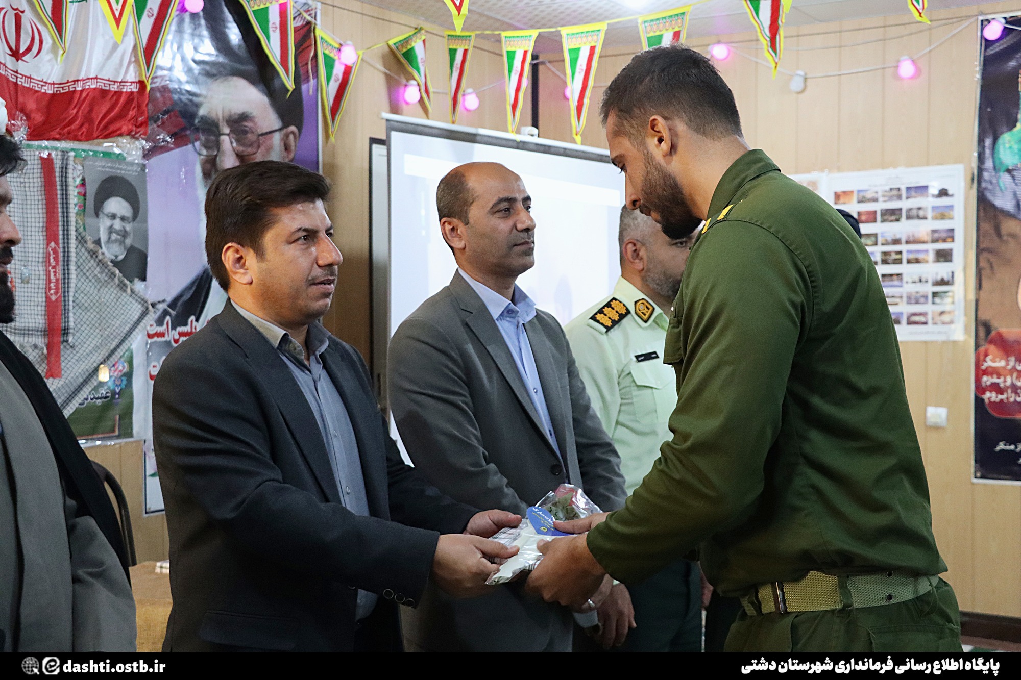 در پایان این مراسم از سربازان نمونه انتظامی و سپاه شهرستان دشتی تجلیل به عمل آمد.