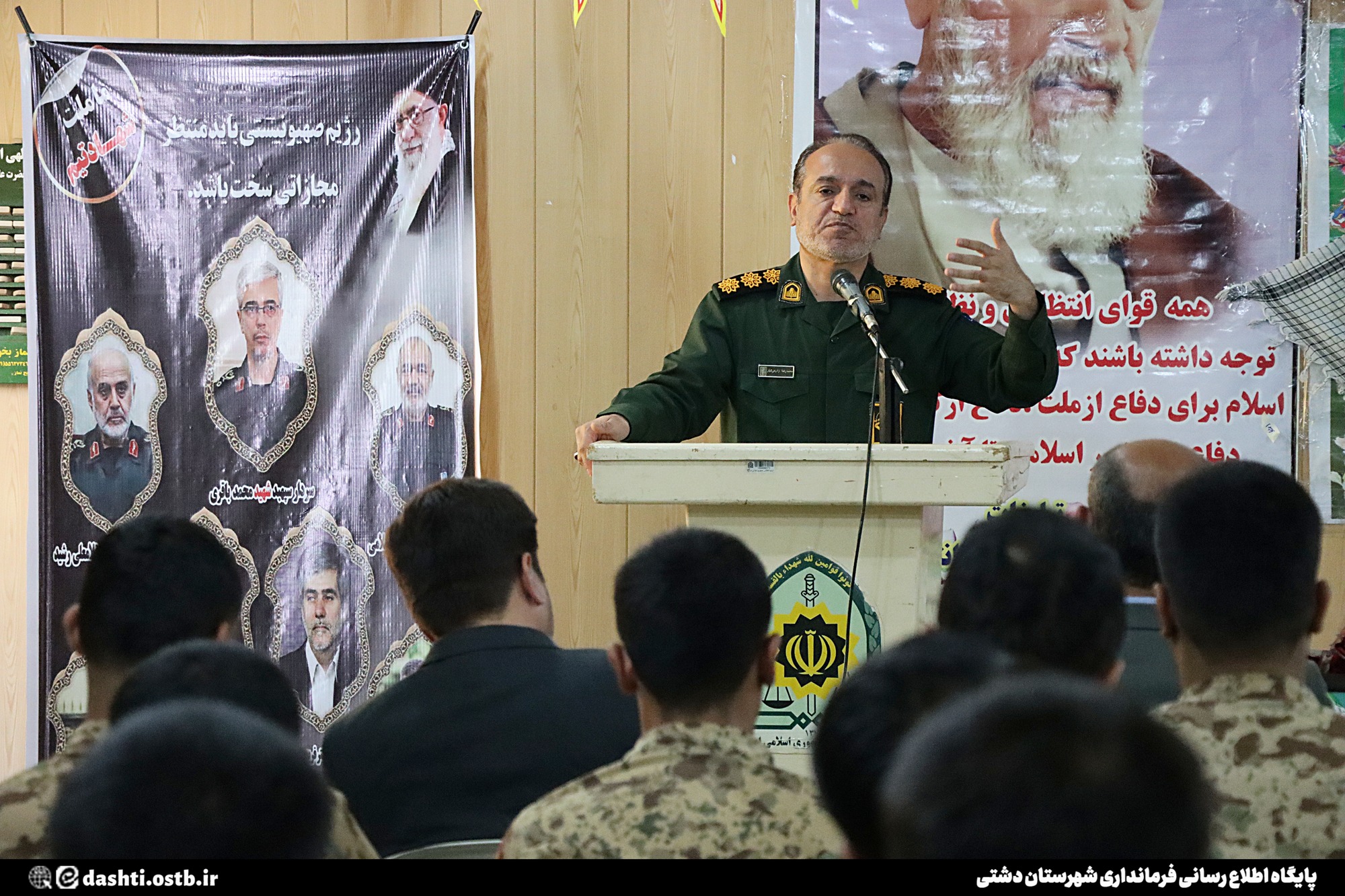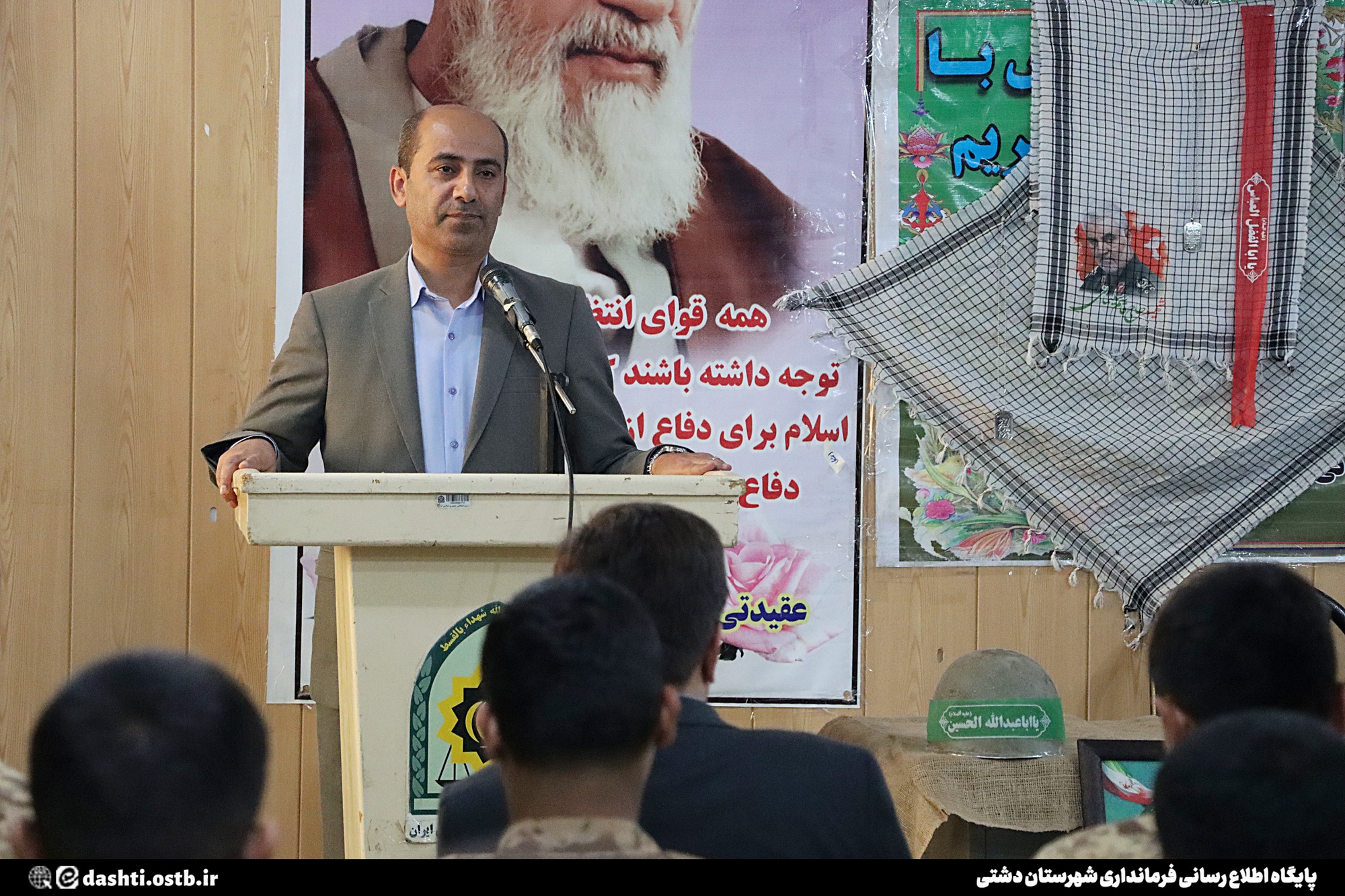 فرماندار دشتی بیان داشت: در طول دوران انقلاب اسلامی شاهد ایثار و جان‌فشانی‌های فراوانی از سوی سربازان این مرز و بوم بوده‌ایم و سربازان انقلاب در هر جایگاهی، چه در نیروهای مسلح و چه در عرصه‌های مختلف خدمت، از دستاوردهای نظام دفاع می‌کنند.