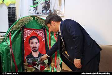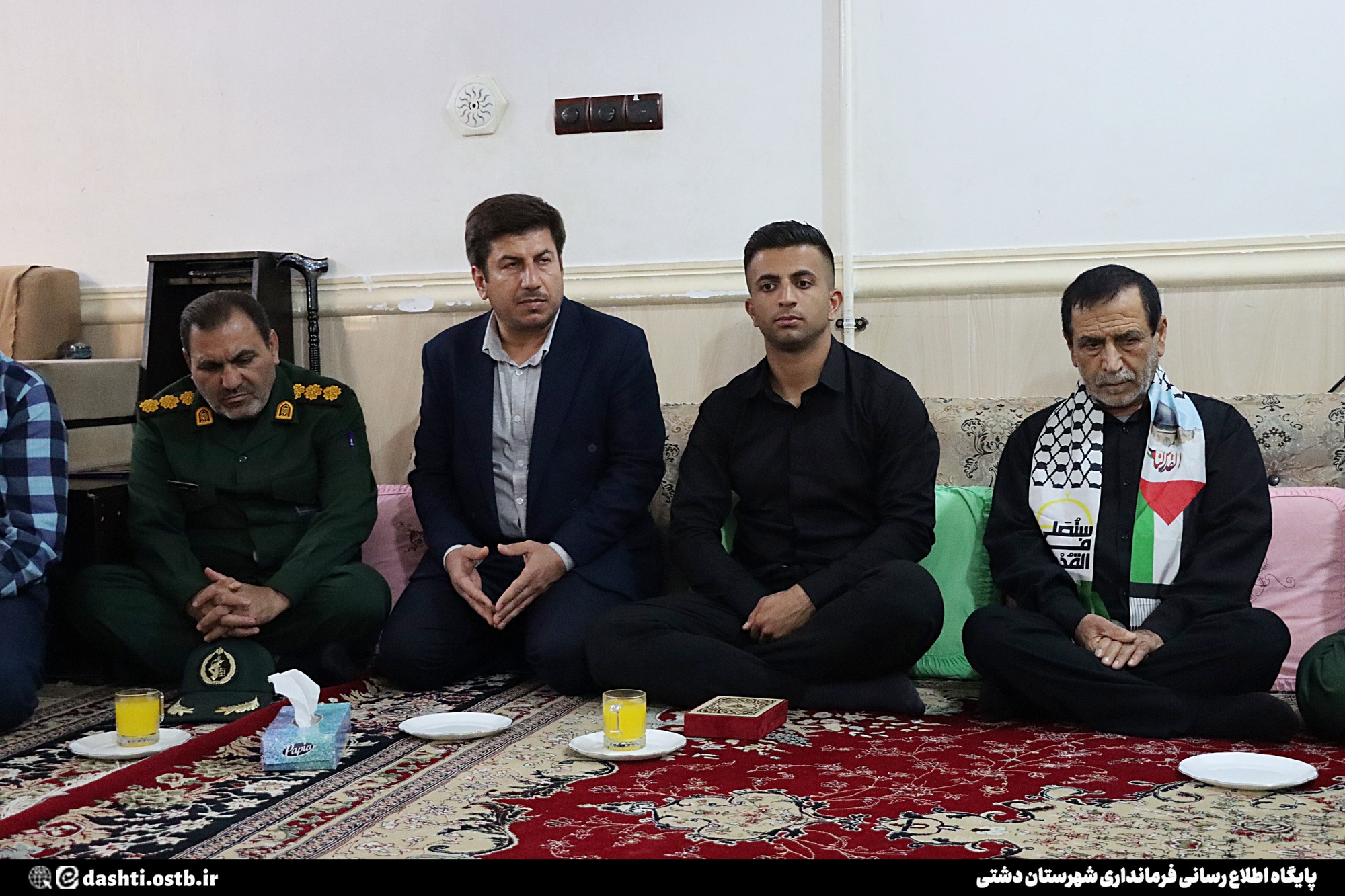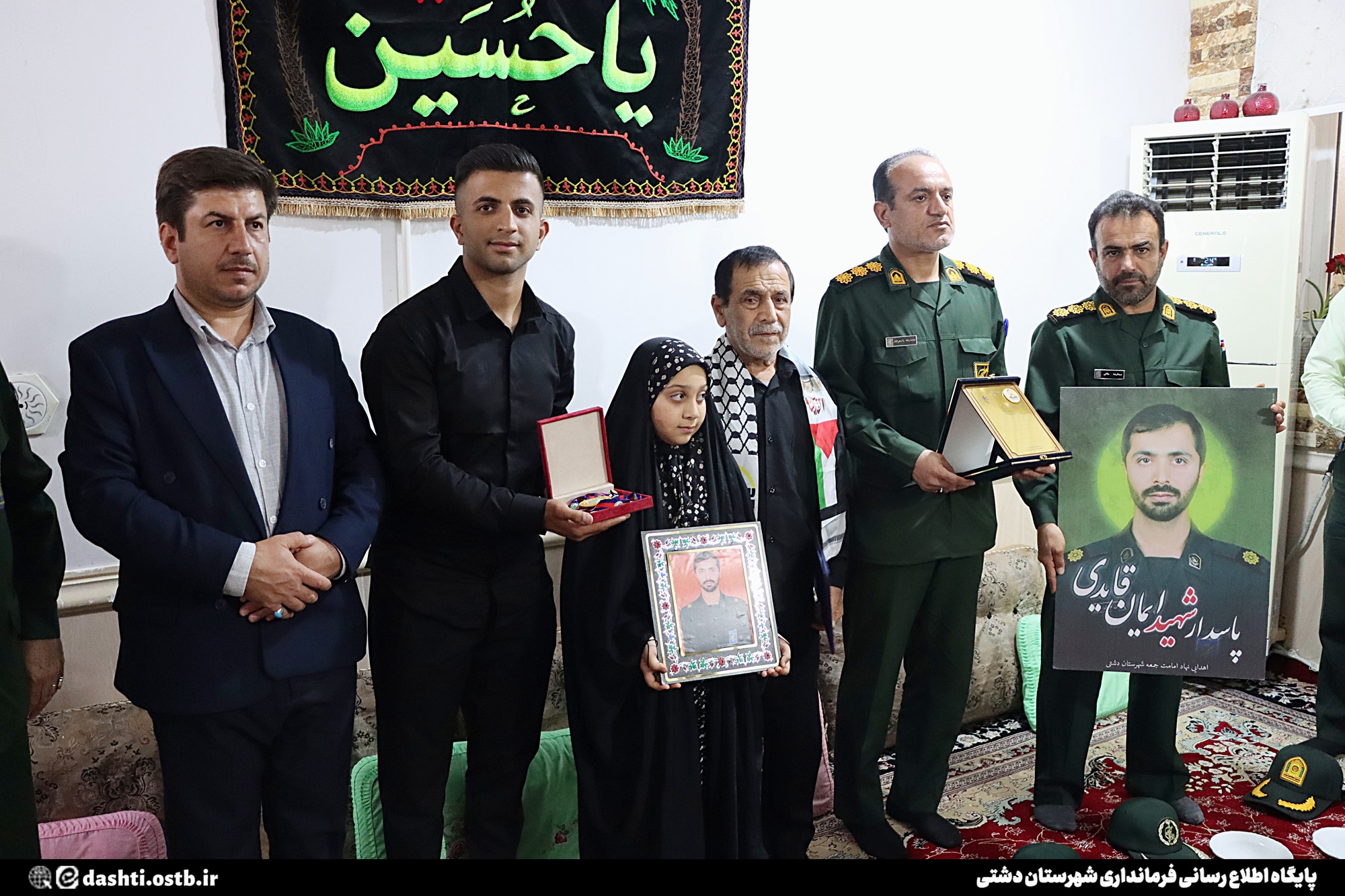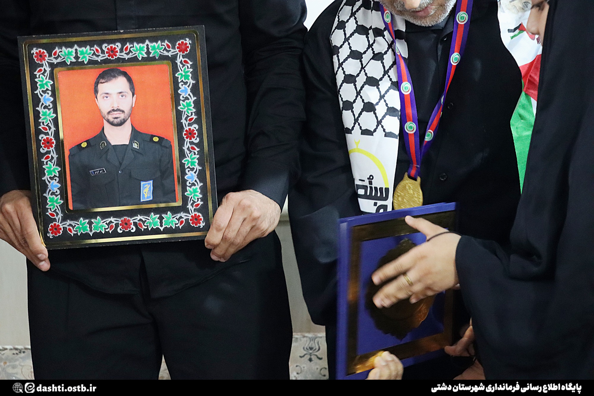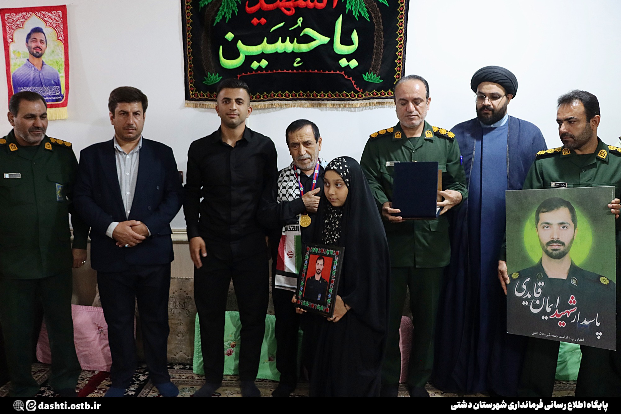 اهدای مدال قهرمانی کشور به خانواده شهید ایمان قایدی در شهرستان دشتی