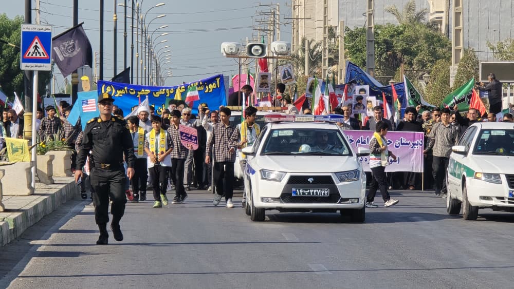 راهپیمایی ۱۳ آبان از یادمان شهدای گمنام آغاز و تا مصلای جمعه برگزار شد‌.