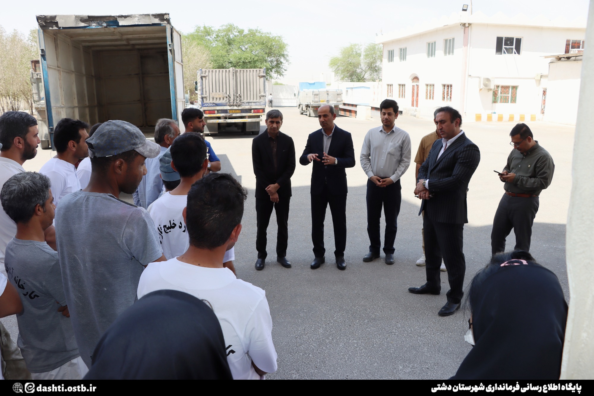 فرماندار دشتی با بیان اینکه حمایت از کارگران وظیفه ای جدی برای مسئولان است؛ گفت: در کنار شما هستیم و از هیچ تلاشی برای ارتقای وضعیت کاری و رفاهی کارگران شهرستان و حمایت از شما فروگذار نخواهیم کرد.