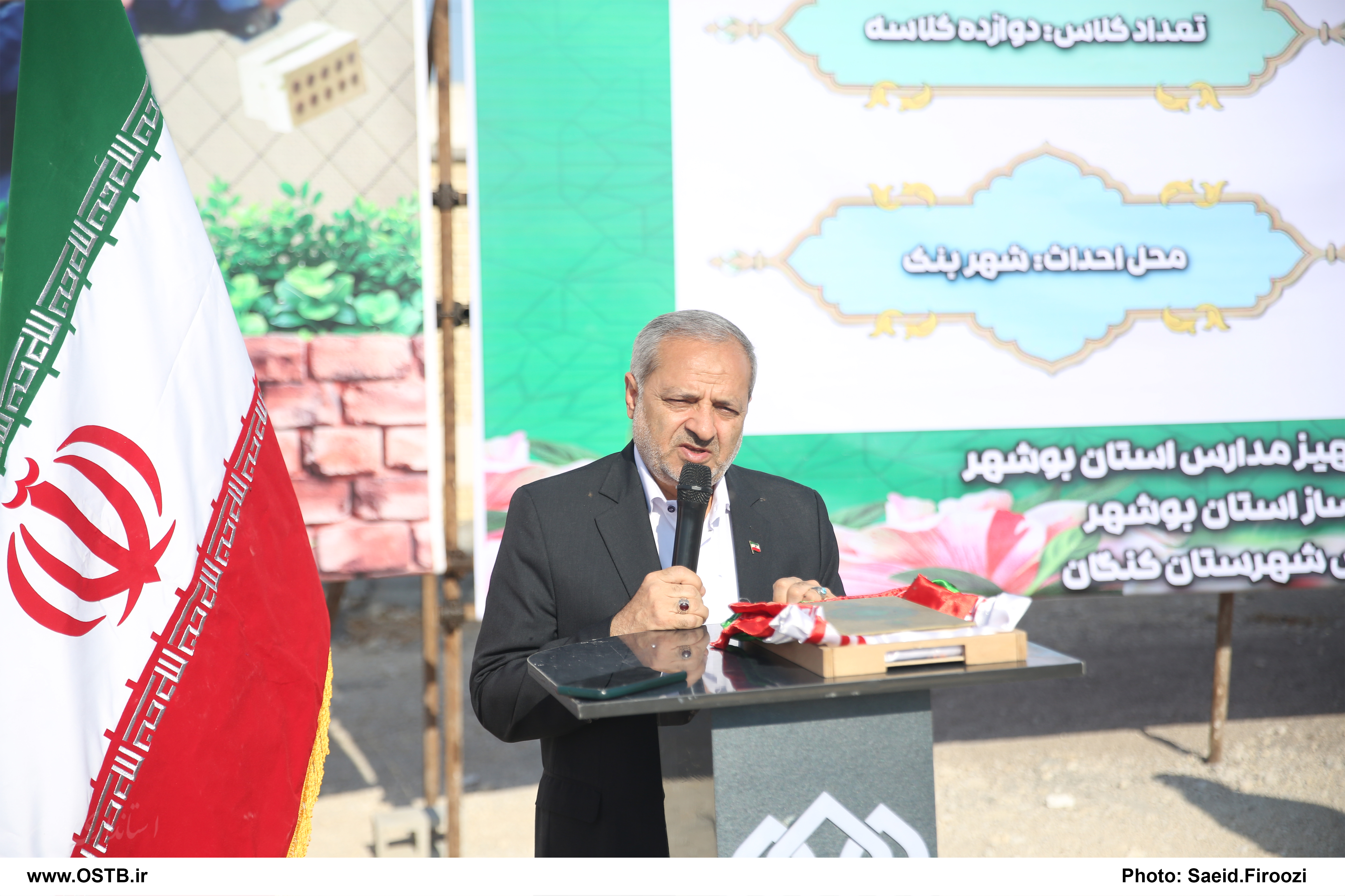 در آیینی باحضور دکتر علیرضا کاظمی وزیر آموزش و پرورش و دکتر ارسلان زارع استاندار بوشهر، کلنگ احداث یک مدرسه ۱۲ کلاسه خیرساز در شهر بنک شهرستان کنگان به زمین زده شد.
