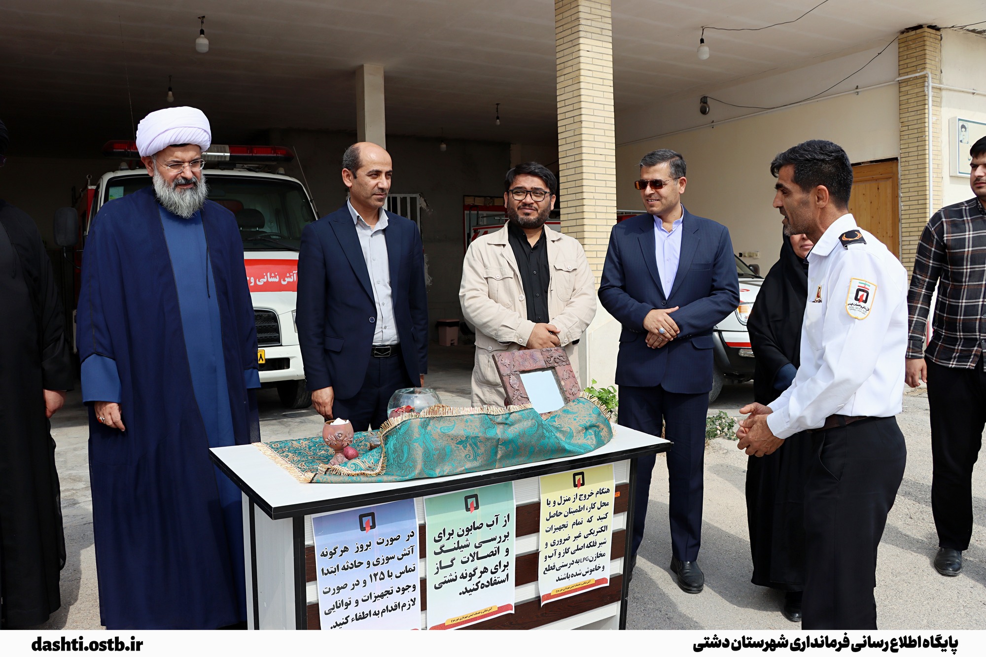 فرماندار دشتی به همراه امام جمعه شهرستان و جمعی از مسئولان شهرستان، سال نو را در محل ساختمان آتشنشانی خورموج به آتشنشانان تبریک گفتند.