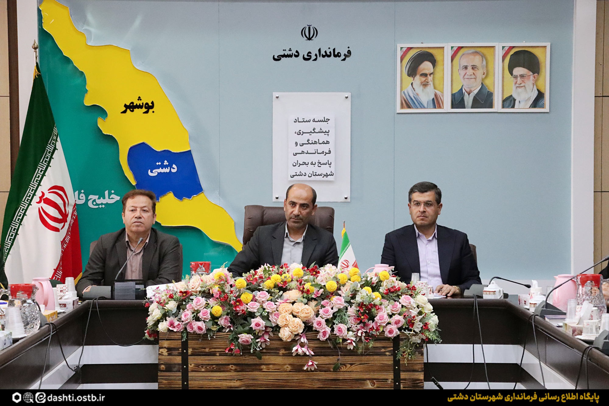 فرماندار دشتی از مدیران خواست تا بانک اطلاعاتی خود را به‌روزرسانی کرده و دستگاه‌های مسئول، نظارت ویژه‌ای بر نانوایی‌ها و بازار داشته باشند تا از هرگونه مشکل احتمالی جلوگیری شود.