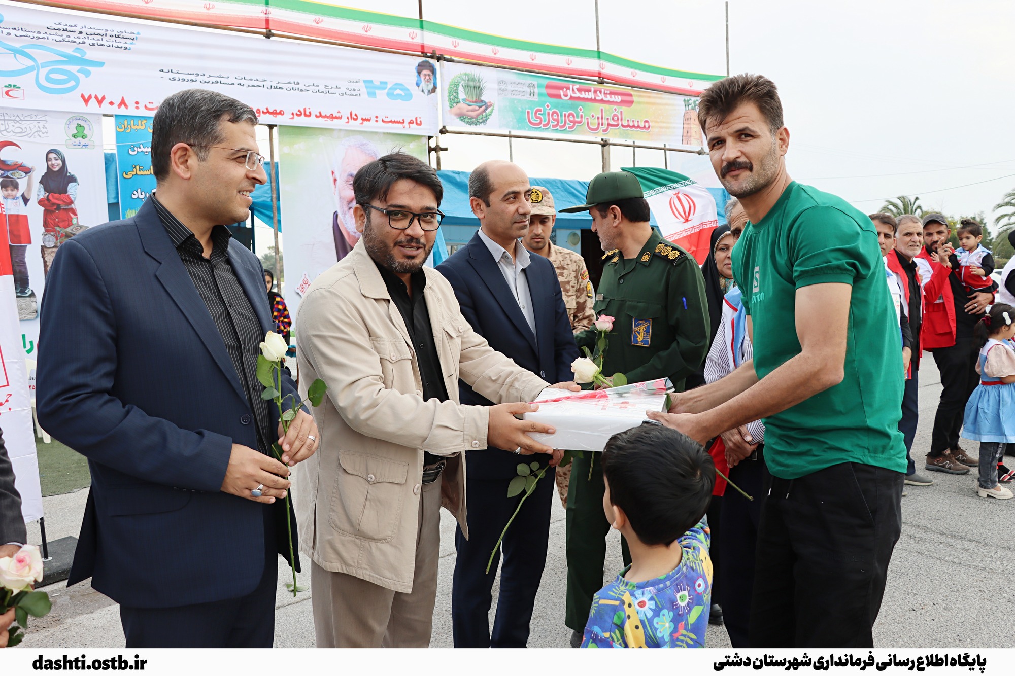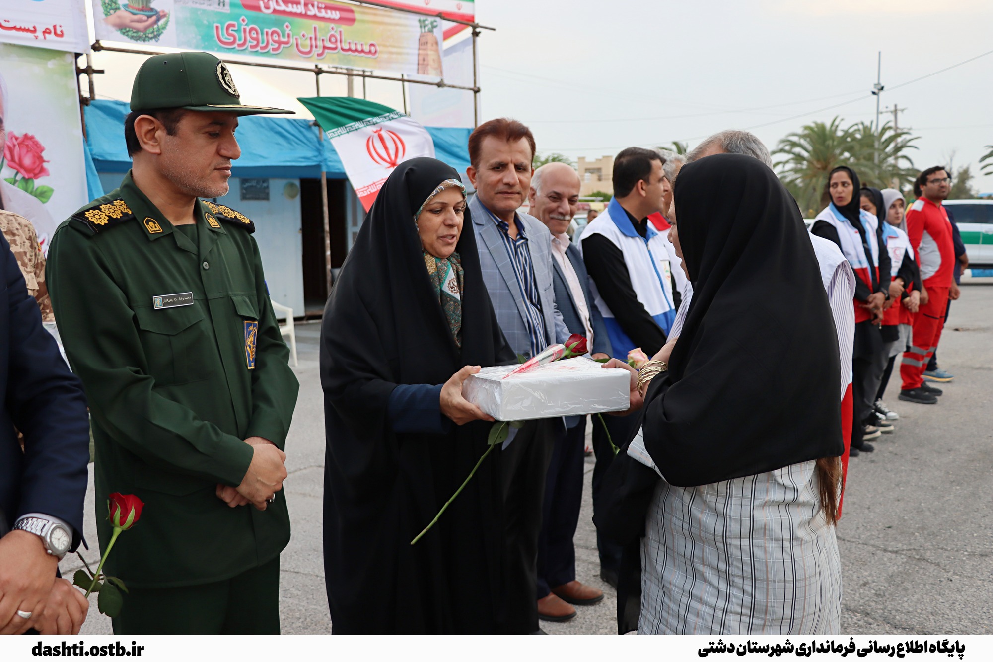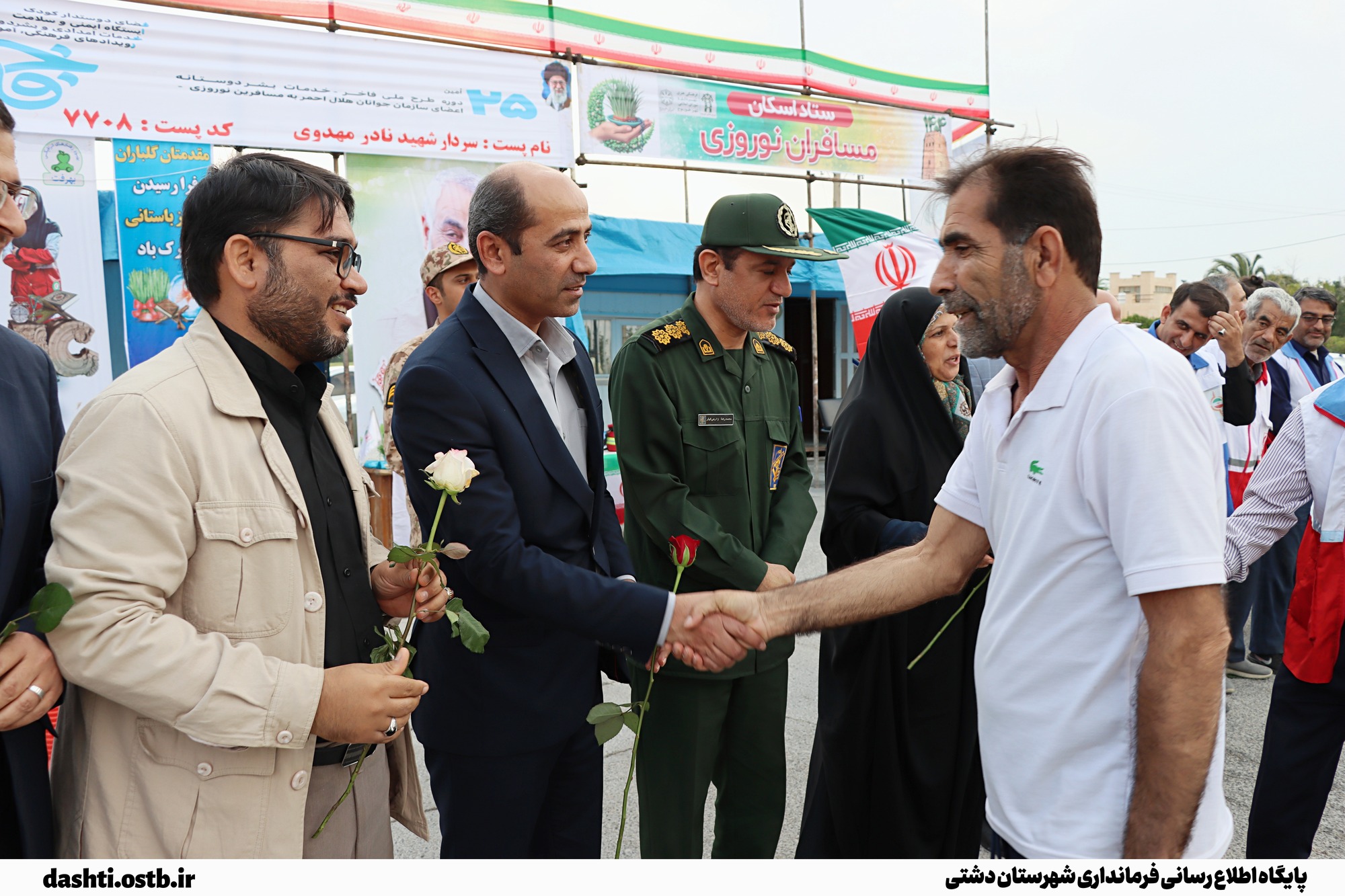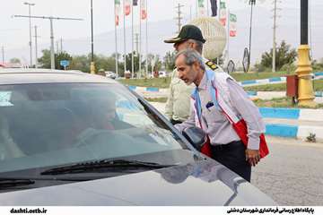 استقبال نوروزی فرماندار دشتی از مسافران در میدان خالو حسین