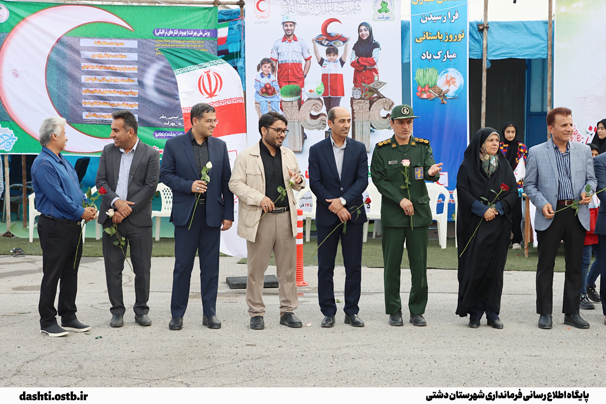 در این مراسم، فرماندار دشتی و همراهان با اهدای شاخه گل و هدایایی به مسافران، فرارسیدن سال نو را تبریک گفته و برای آنان سفری ایمن و خاطره‌انگیز آرزو کردند.