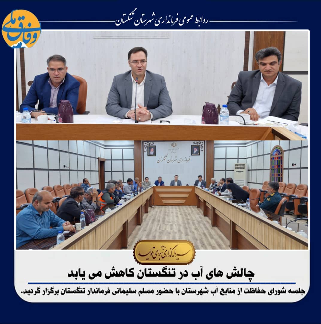 فرماندار تنگستان در جلسه شورای حفاظت از منابع آب شهرستان ، با اشاره به کمبود آب و تشدید آن با شروع فصل گرما و حیاتی دانستن صیانت و حفاظت از منابع آب زیرزمینی و سطحی، عنوان کرد : لازم است با اعمال تدابیر لازم برای کنترل چالش آب شهرستان در بخشهای شرب و کشاورزی اقدامات پیشگیرانه انجام گیرد.