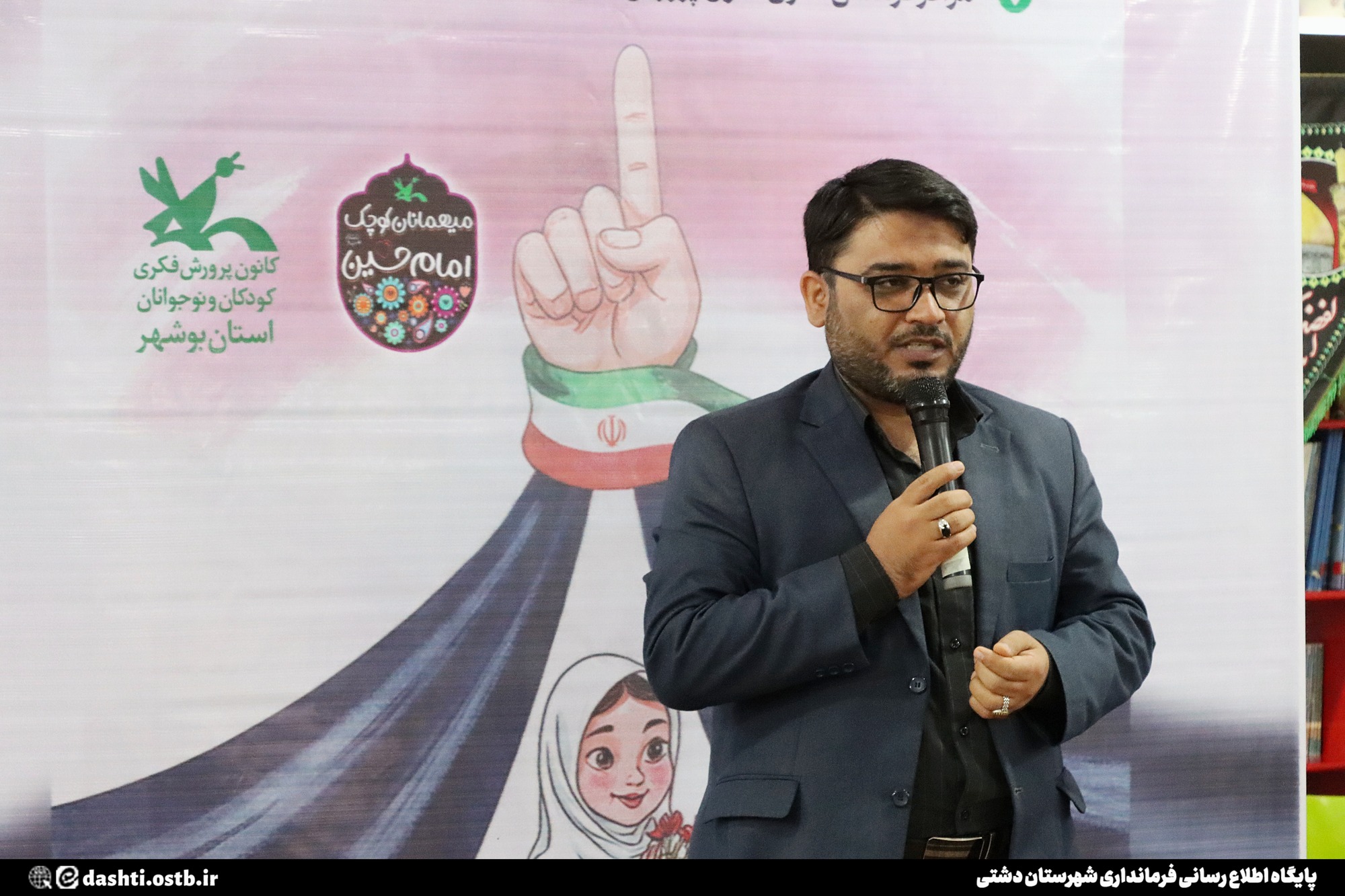 وی همچنین با قدردانی از کانون پرورش فکری کودکان و نوجوانان شهرستان دشتی به عنوان برگزارکننده اصلی برنامه تقدیر کرد.