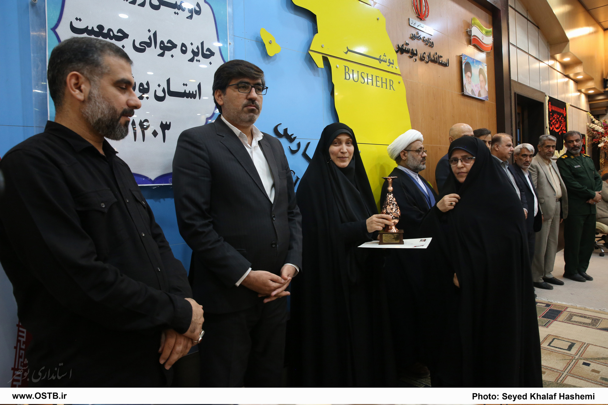 مراسم اختتامیه دومین رویداد استانی جایزه جوانی جمعیت که با حضور احمد محمدی زاده استاندار بوشهر، فرمانداران و جمعی از مدیران دستگاه‌های اجرایی و فعالین حوزه خانواده و جمعیت در سالن اجتماعات استانداری بوشهر برگزار شد که لیلا دولت خواه دستیار فرماندار گناوه در امر مردمی سازی دولت به نمایندگی از محمد تقی صفری هدایا را تحویل گرفت.