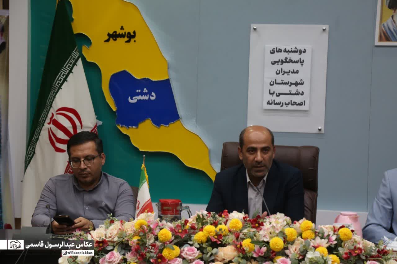فرماندار دشتی، با تأکید بر لزوم وفاق، انسجام و همدلی در شرایط فعلی جامعه اظهار داشت: انتظار داریم خبرنگاران اگر در مورد موضوعی نیاز به انعکاس رسانه‌ ای دارند، پیش از آن، با پیگیری دقیق و پرسش از منابع مسئول، از صحت و جزئیات آن اطمینان حاصل کنند. در این نشست مدیر جهاد کشاورزی شهرستان نیز پاسخگو سوالات خبرنگاران بود.