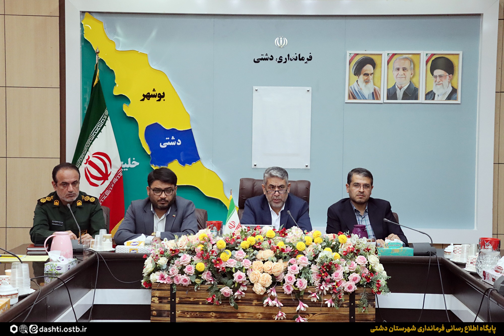 فرماندار دشتی گفت: وظیفه ما به‌عنوان کارگزاران انقلاب اسلامی این است که در همه عرصه‌ها نظام را یک گام به جلو ببریم و رضایت مردم را افزایش دهیم.