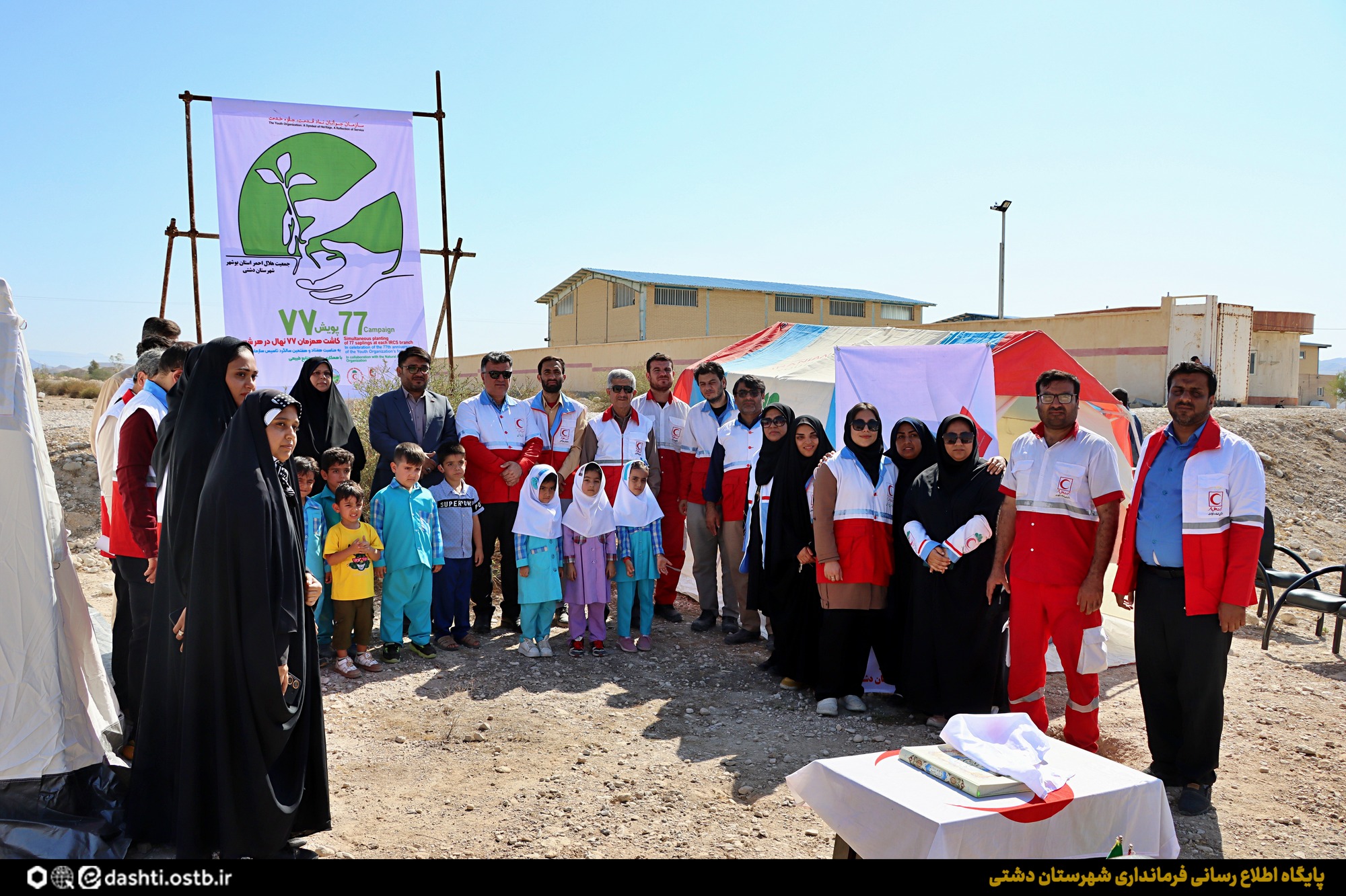این پویش با حضور معاون سیاسی، امنیتی و اجتماعی فرمانداری شهرستان دشتی، بخشدار مرکزی، رئیس جمعیت هلال احمر شهرستان برگزار شد، اعضا و داوطلبان جمعیت هلال احمر با شور و اشتیاق به کاشت ۷۷ اصله نهال پرداختند.