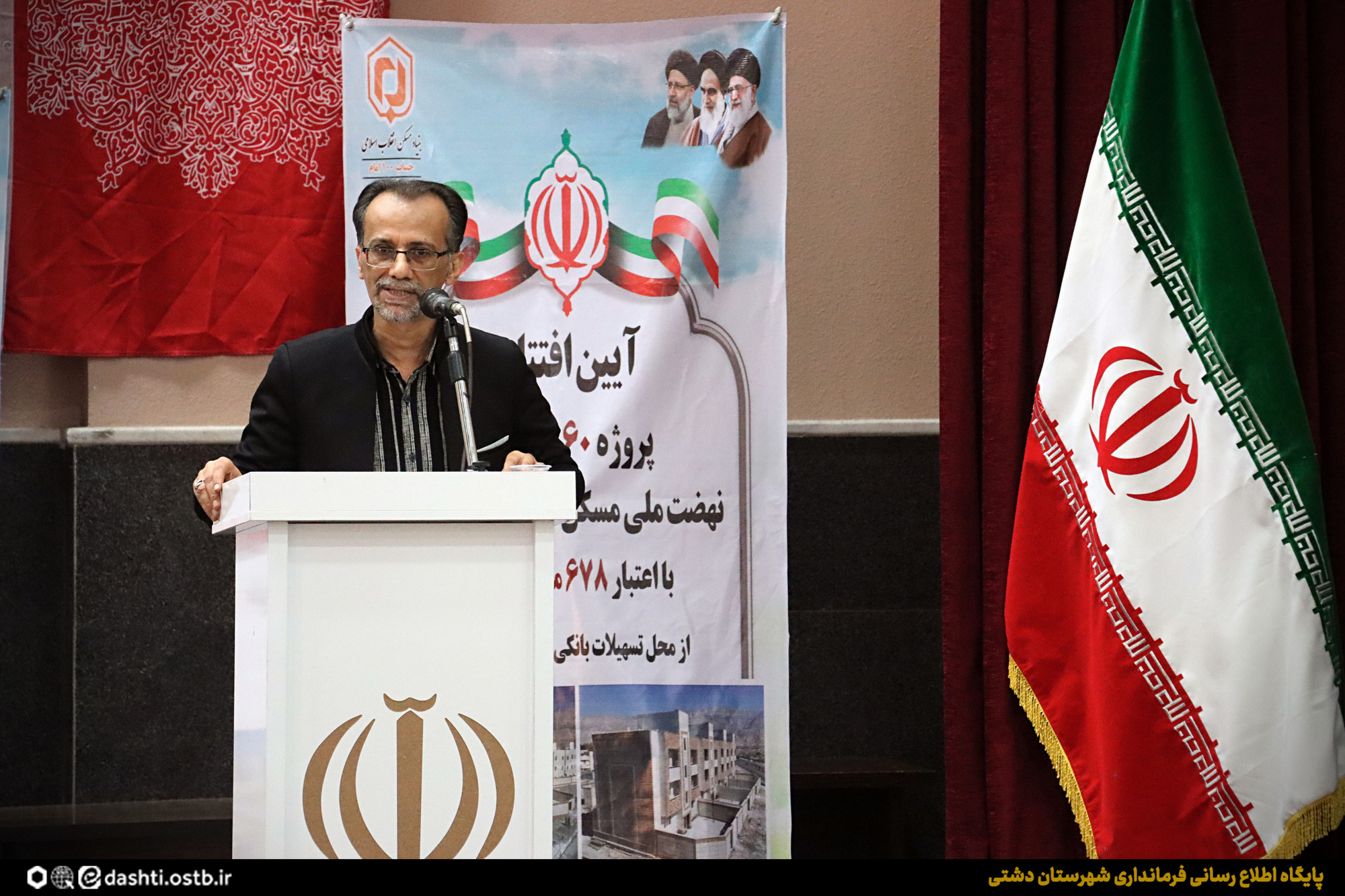 همچنین مجموعه ۶۰ واحدی طرح نهضت ملی مسکن در شهرستان دشتی نیز با اعتبار ۶۷۸ میلیارد ریال مورد بهره برداری قرار گرفت.