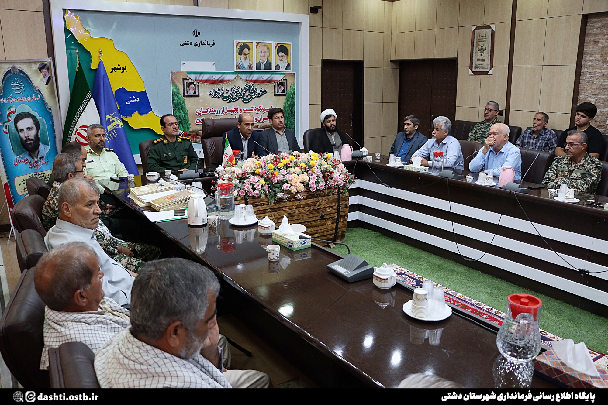 فرماندار دشتی تأکید کرد: وظیفه امروز ما خدمت بی‌منت به مردم است و با وجود همه مشکلات، می‌توانیم با همدلی و همراهی بر مشکلات غلبه کنیم قله‌های افتخار را برای ملت عزیزمان فتح کنیم.